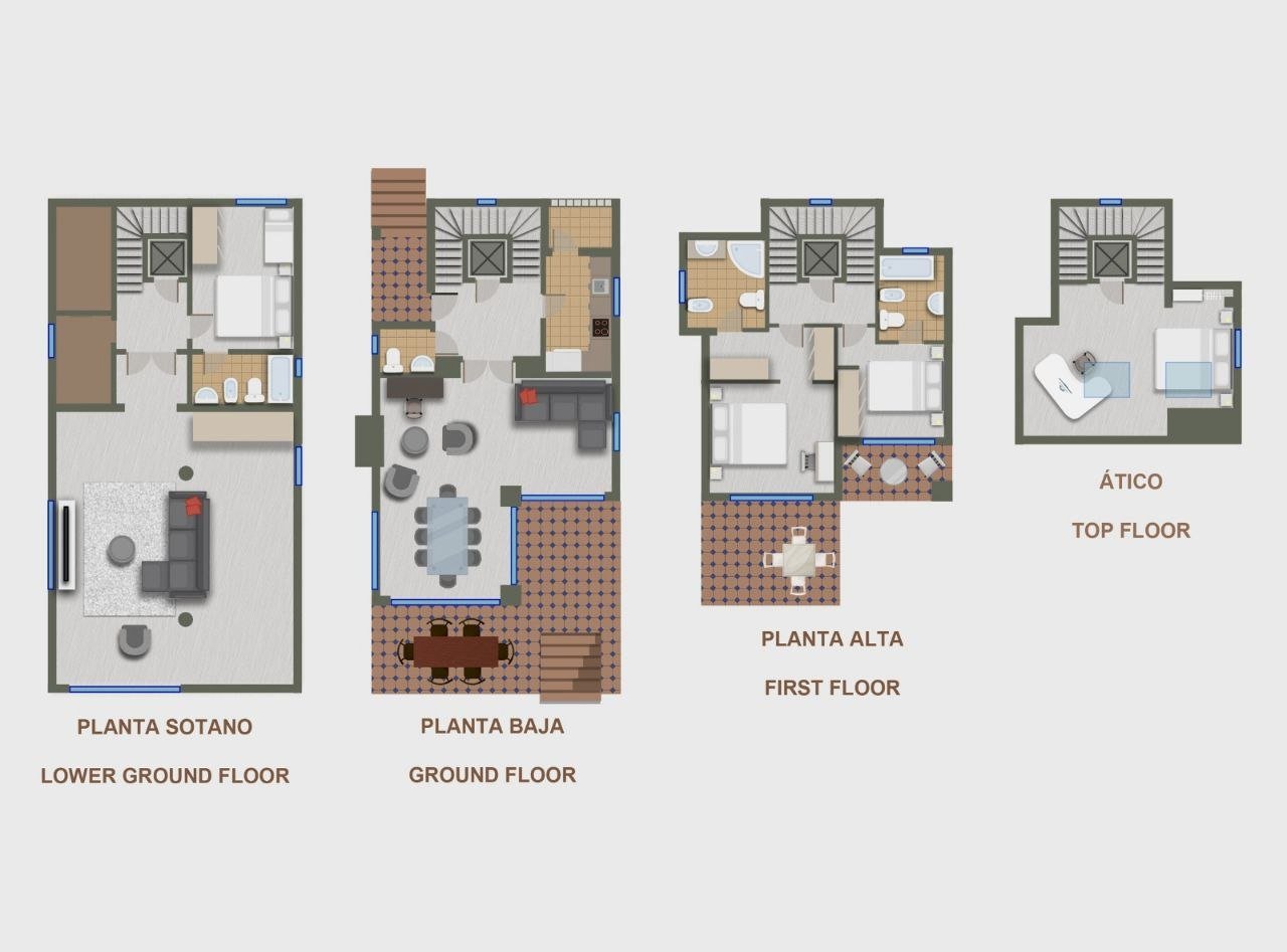 Built area: 220 m² distributed over 4 floors