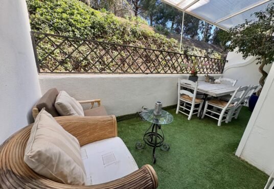 La Quinta area of Benahavís, this beautifully renovated first-floor apartment offers comfort, style and a tranquil setting with lovely southwest orientation and views to the