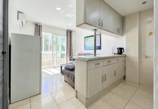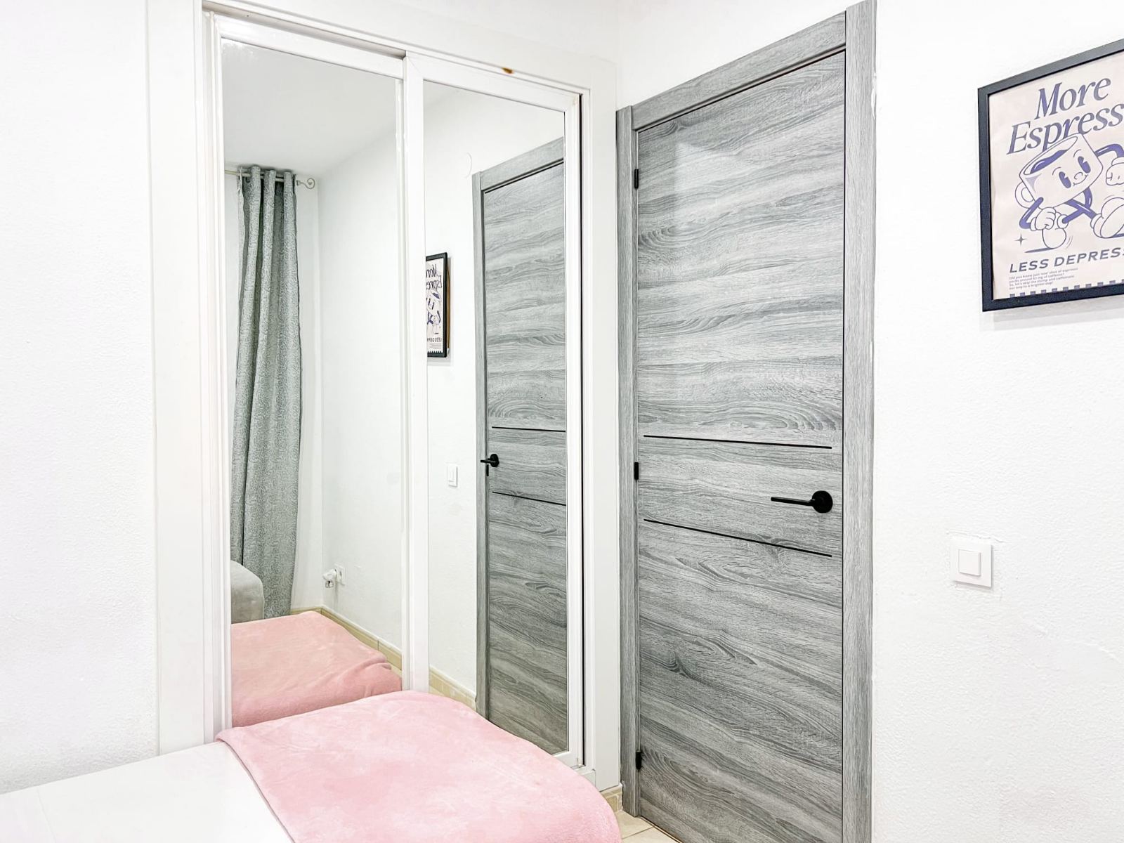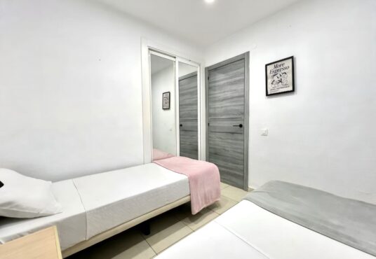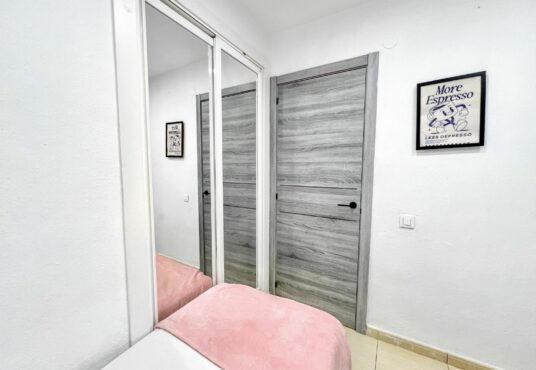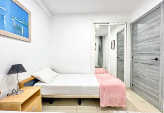 La vivienda cuenta con recibidor con salida a una terraza orientada al suroeste, que garantiza sol de tarde y mucha luz. Una terraza muy soleada, cocina americana totalmente equipada, dormitorio principal con cama doble y armario empotrado, segundo dormitorio y baño con ducha.