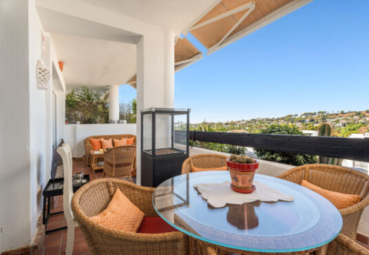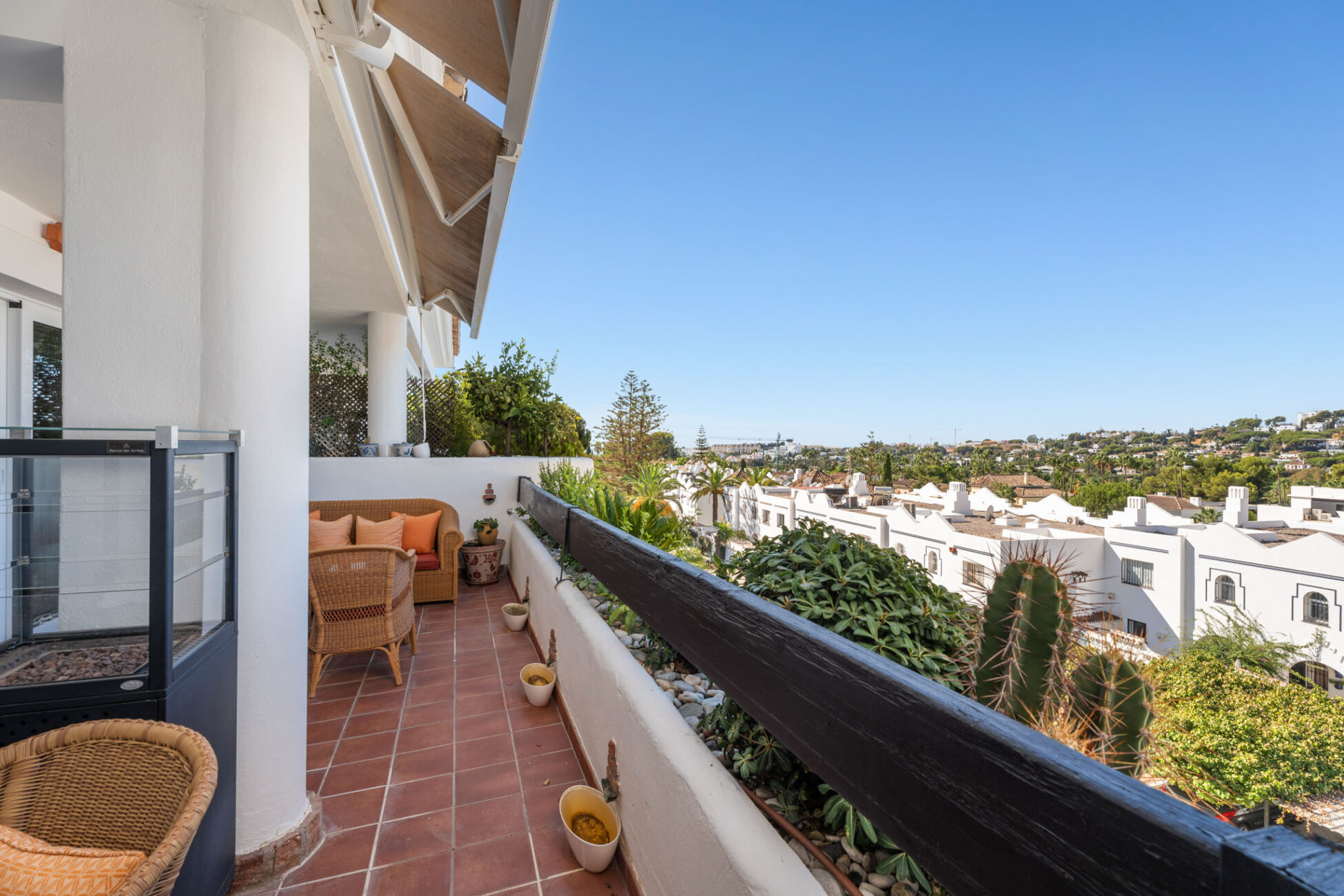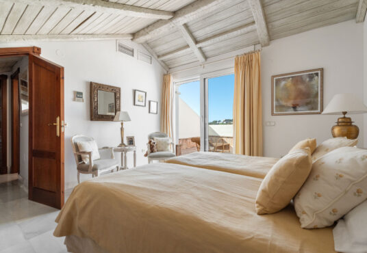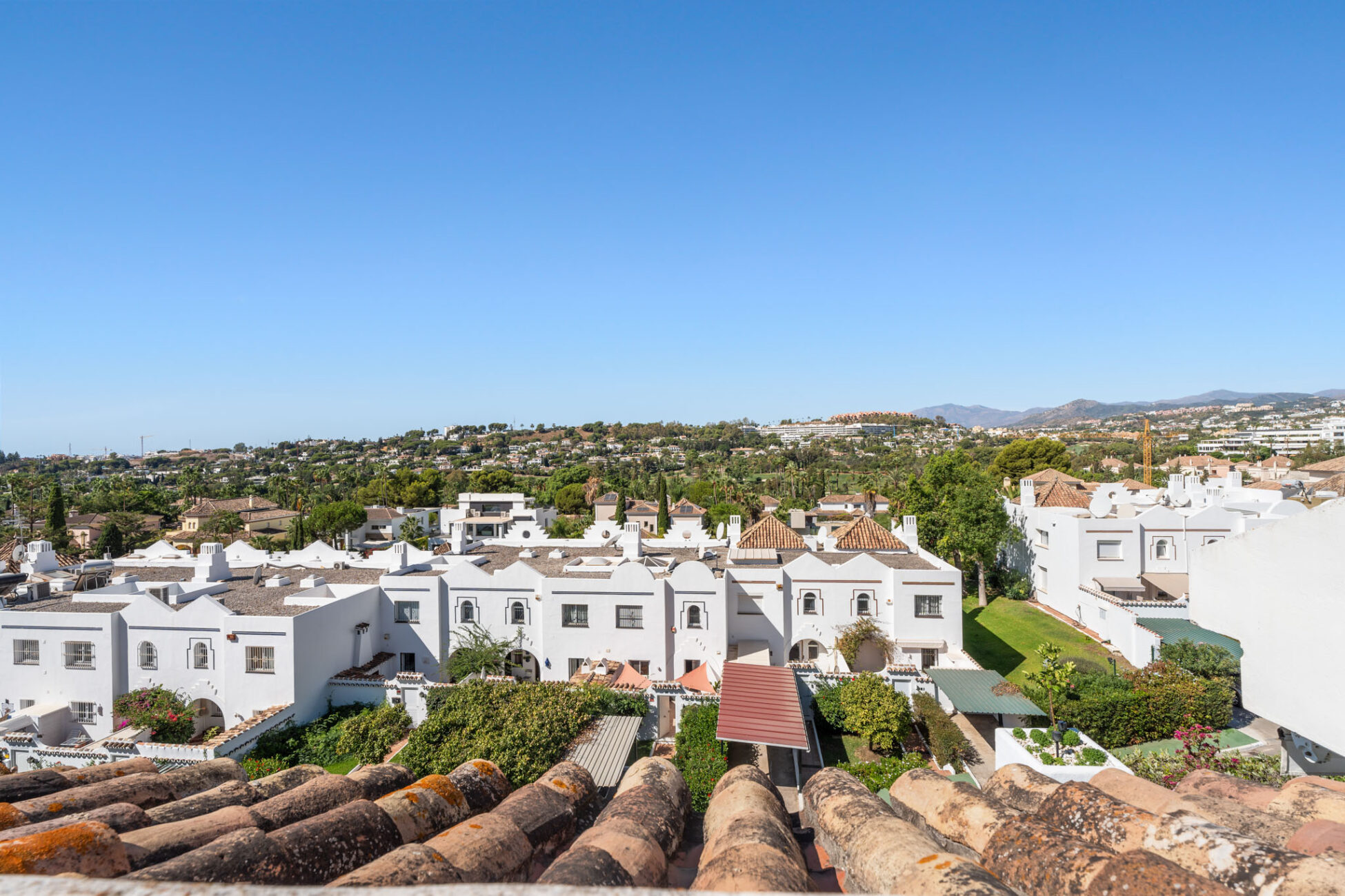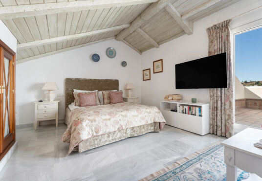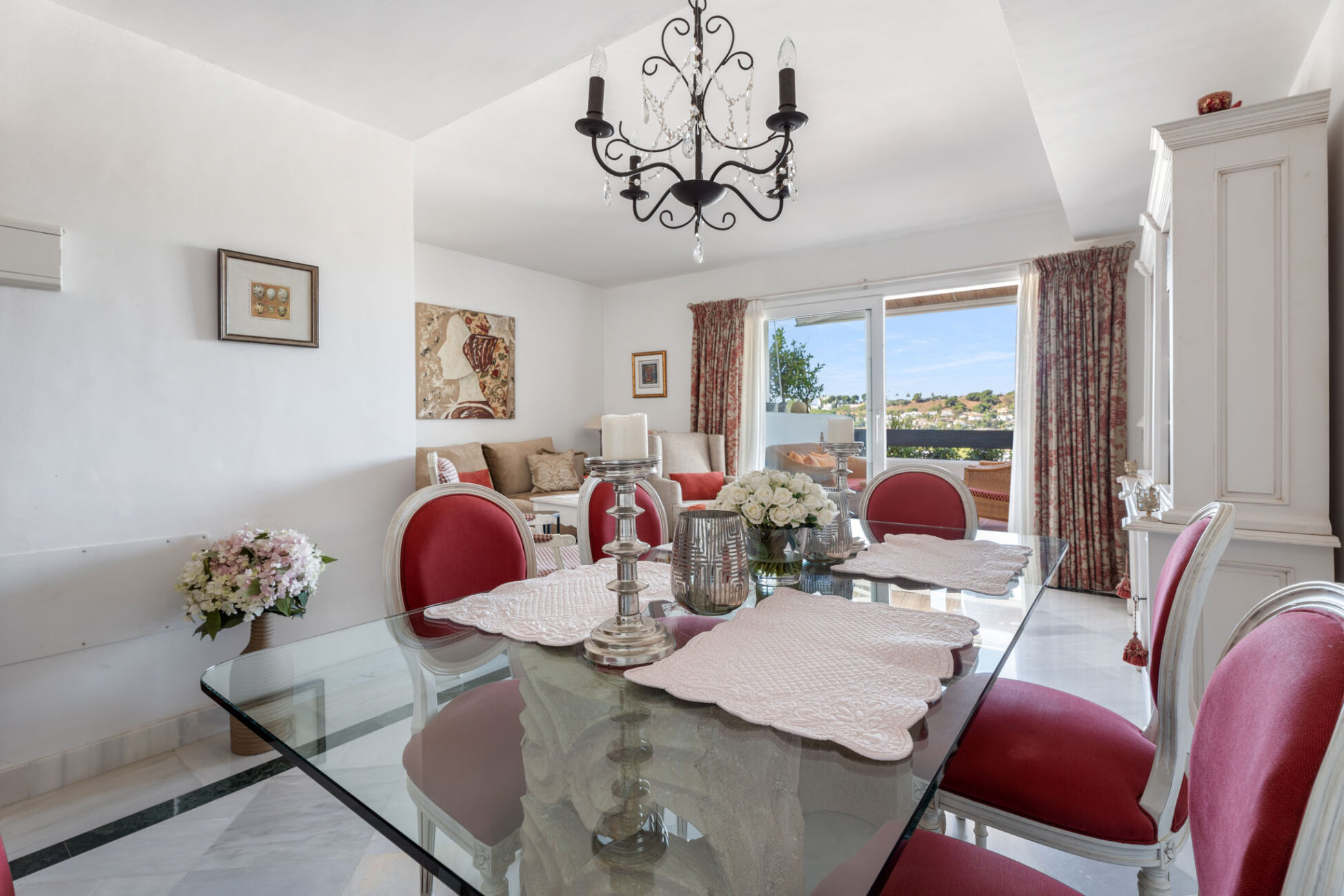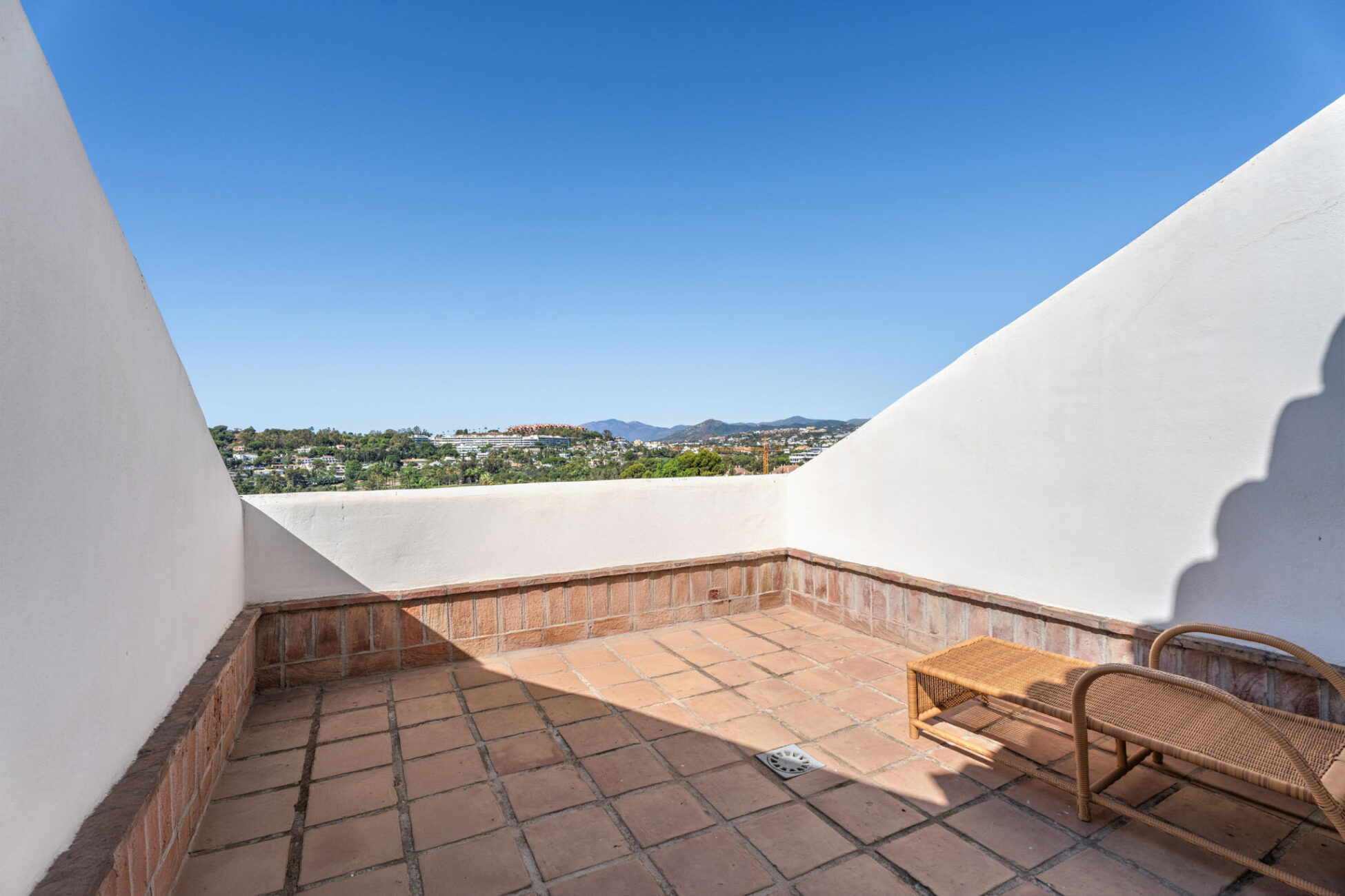Le presentamos este luminoso y elegante ático dúplex de 3 dormitorios y 2 baños, que incluye 2plazas de garaje y trastero, ubicado en una de las urbanizaciones más tranquilas y codiciadas deNueva Andalucía.En la planta principal, la vivienda ofrece un amplio salón-comedor con acceso a una soleadaterraza con vistas panorámicas al Valle del Golf y orientación suroeste, ideal para disfrutar delas puestas de sol. En este mismo nivel se encuentran un dormitorio, un baño completo y unapreciosa cocina recientemente reformada y totalmente equipada, con salida a una encantadoraterraza perfecta para desayunar al aire libre con vistas a los jardines y la piscina de laurbanización.En la planta superior descubrimos un espectacular dormitorio principal con techo abovedadode madera y acceso a su propia terraza privada. El tercer dormitorio, también muy espacioso,dispone igualmente de salida a una terraza independiente. Ambos dormitorios comparten unmoderno y elegante cuarto de baño.Esta propiedad es ideal tanto como residencia permanente como para inversión, gracias a suexcelente ubicación, su amplitud y el encanto de cada uno de sus espacios.