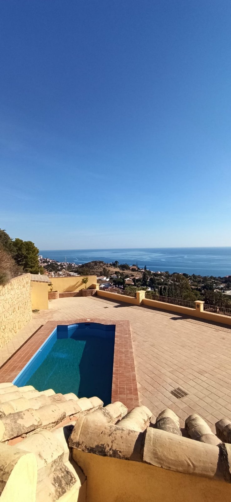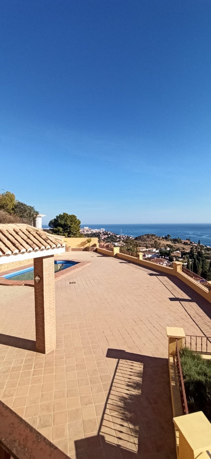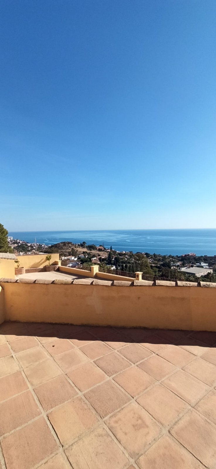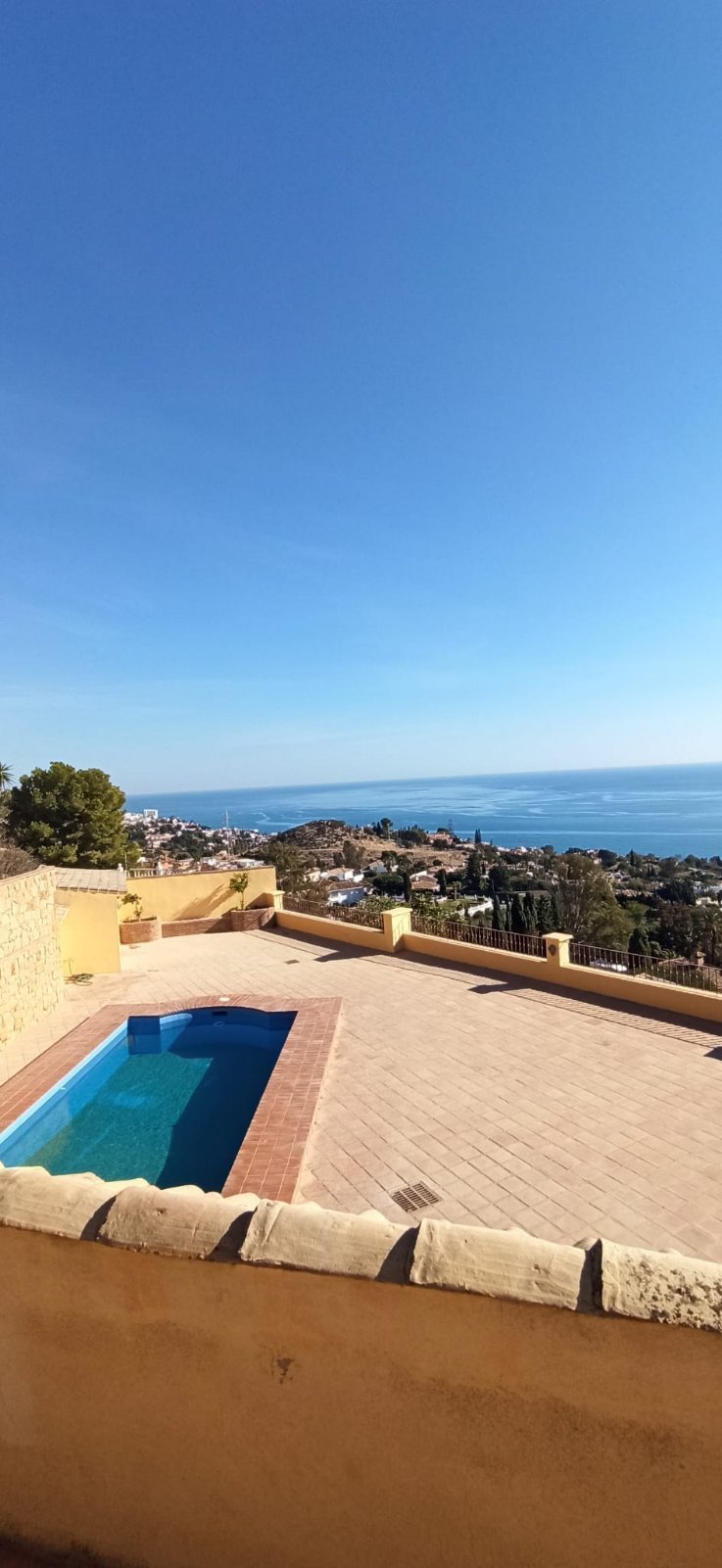 La villa tiene una superficie construida de 397 m² (300 m² útiles) y cuenta con 4 dormitorios, cada uno con su propio baño. El dormitorio principal incluye un amplio vestidor. La cocina está totalmente equipada y el salón con chimenea se abre a una terraza orientada al sur con vistas panorámicas a la bahía de Fuengirola, el lugar perfecto para relajarse o recibir a familiares y amigos.