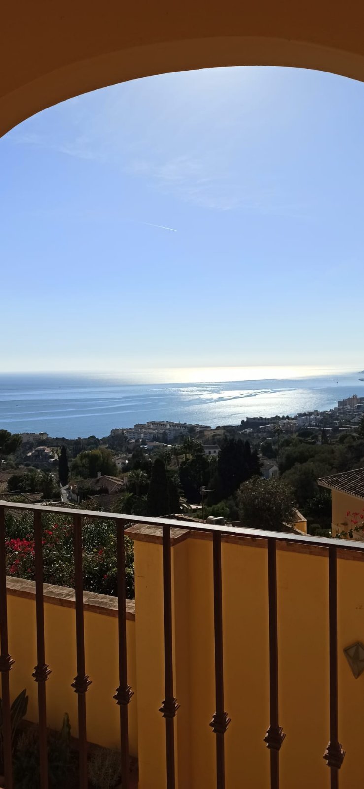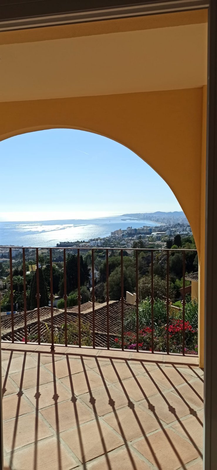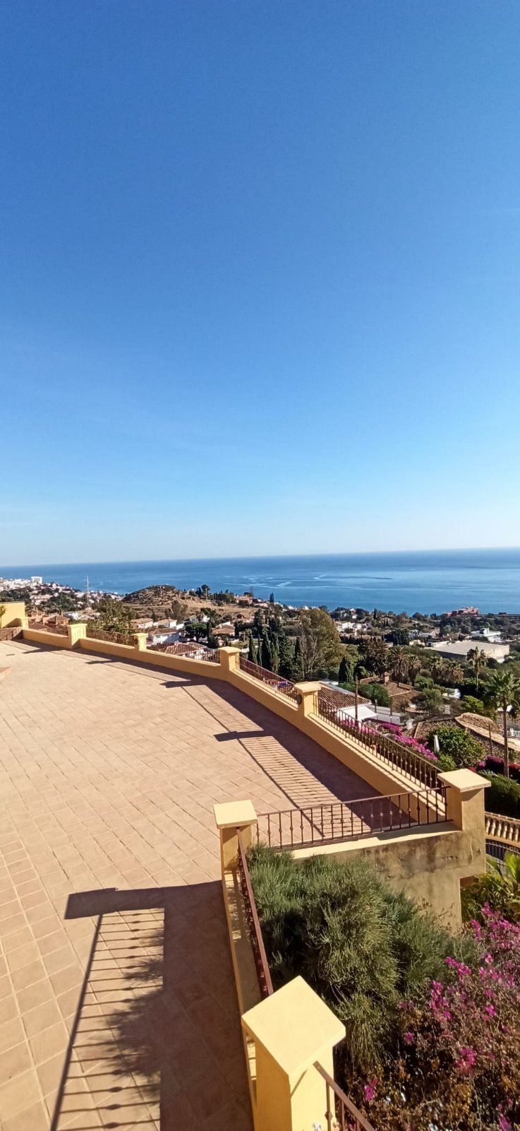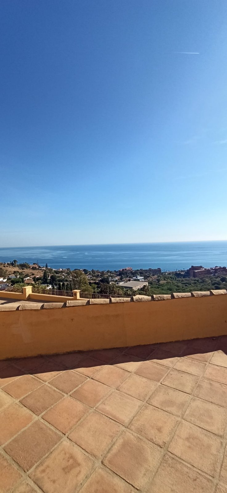 La villa tiene una superficie construida de 397 m² (300 m² útiles) y cuenta con 4 dormitorios, cada uno con su propio baño. El dormitorio principal incluye un amplio vestidor. La cocina está totalmente equipada y el salón con chimenea se abre a una terraza orientada al sur con vistas panorámicas a la bahía de Fuengirola, el lugar perfecto para relajarse o recibir a familiares y amigos.