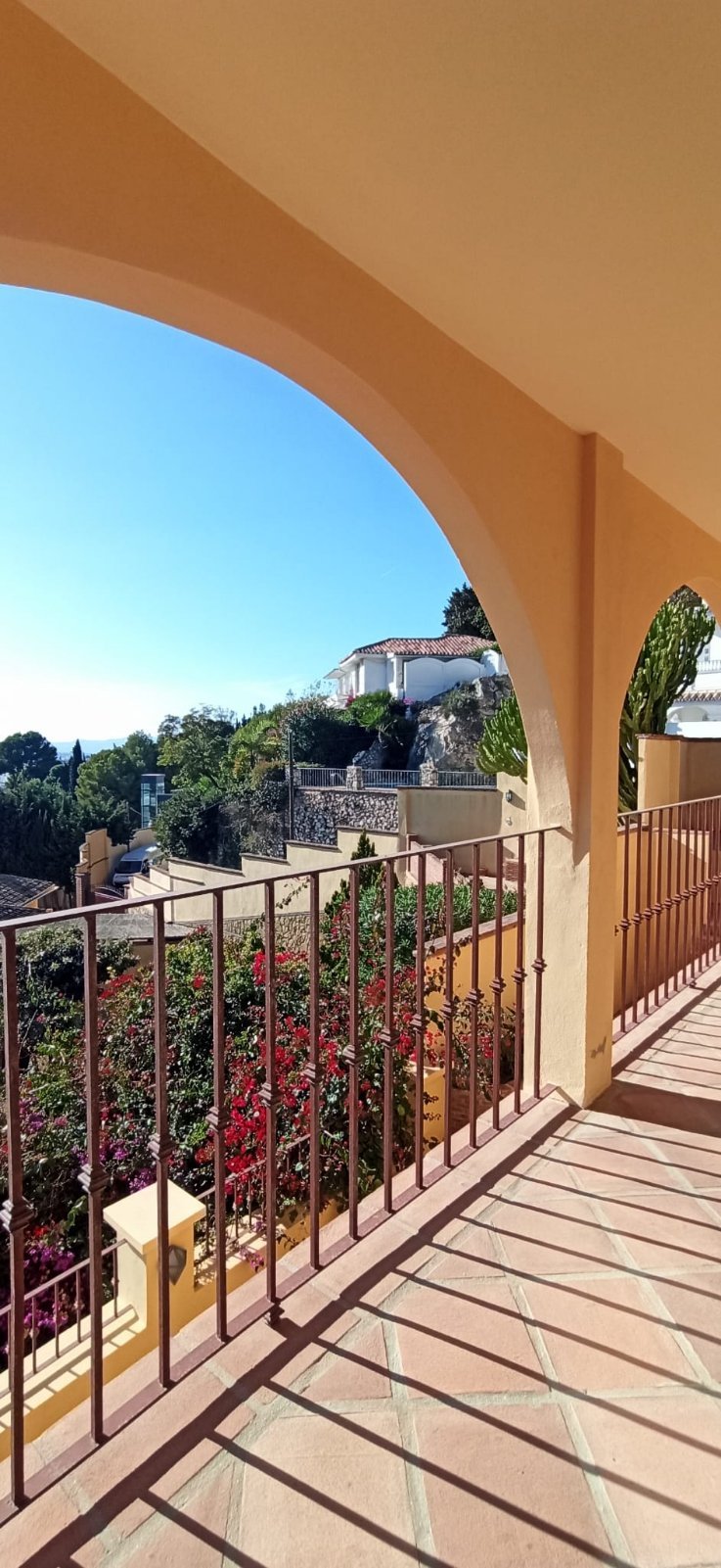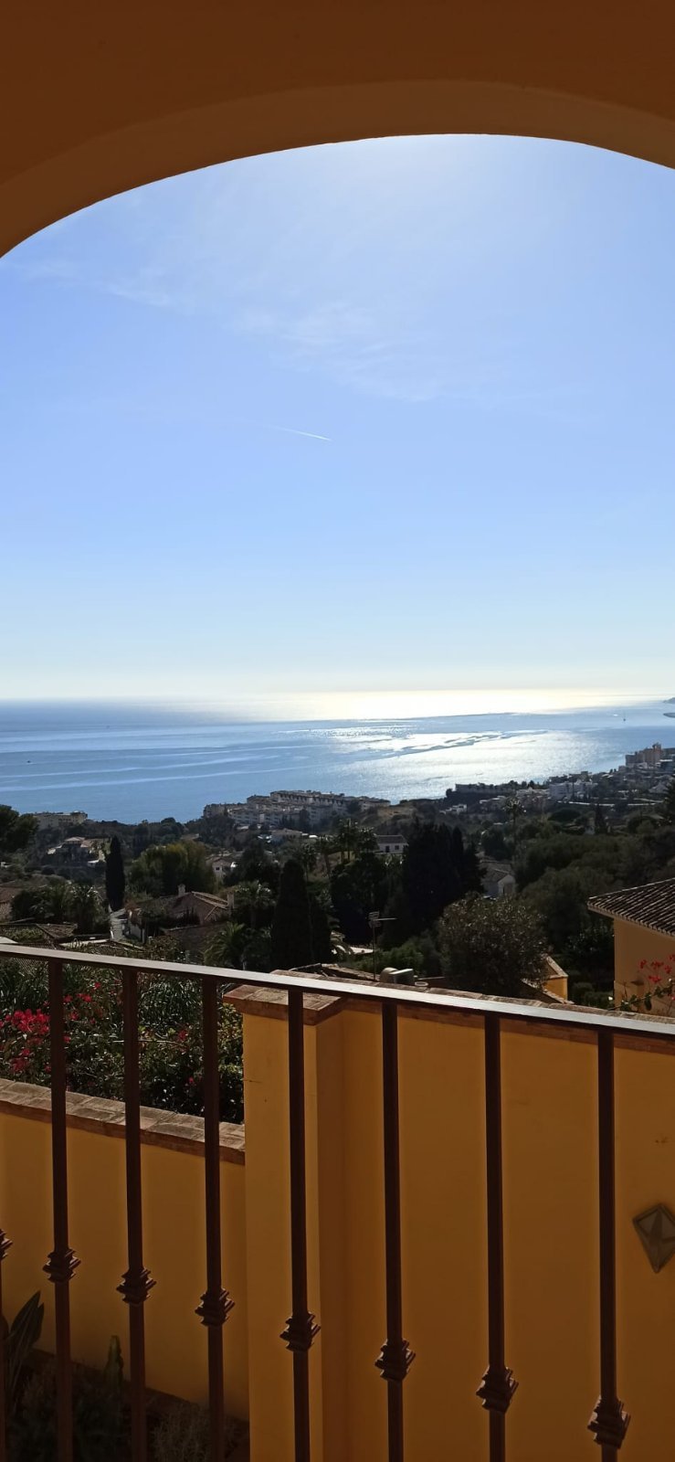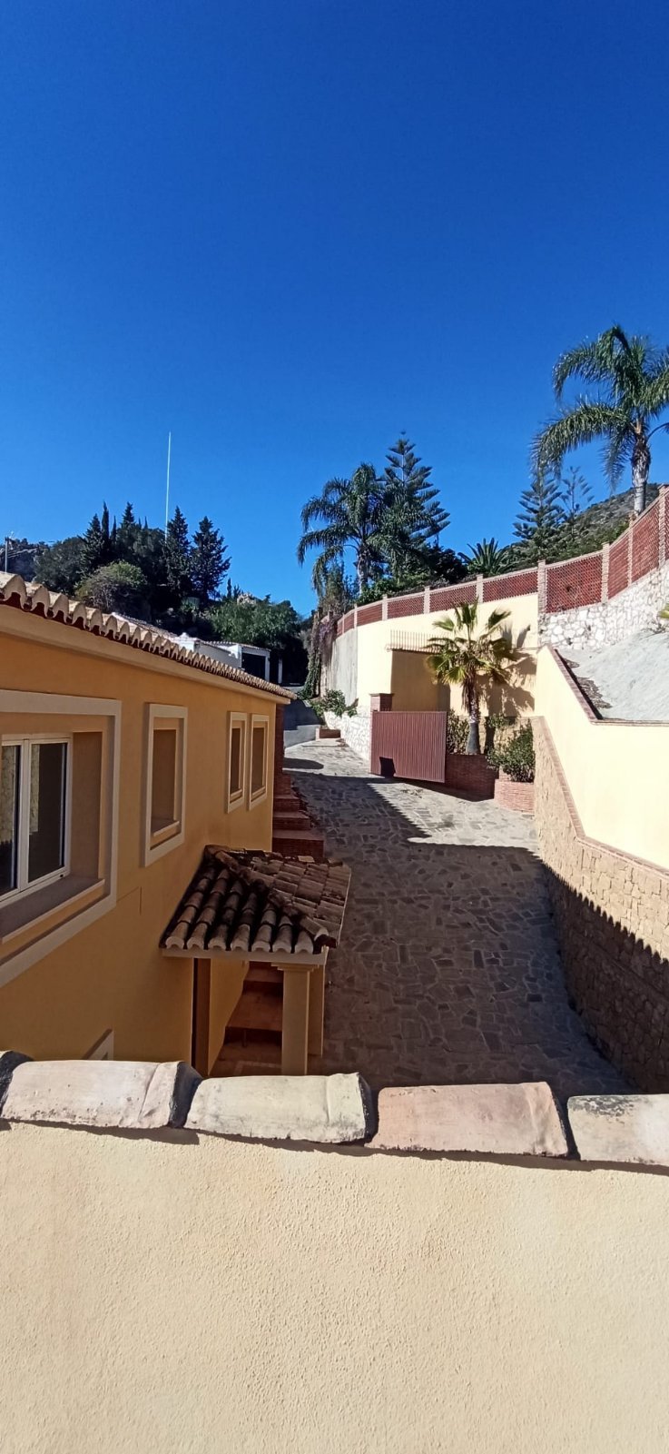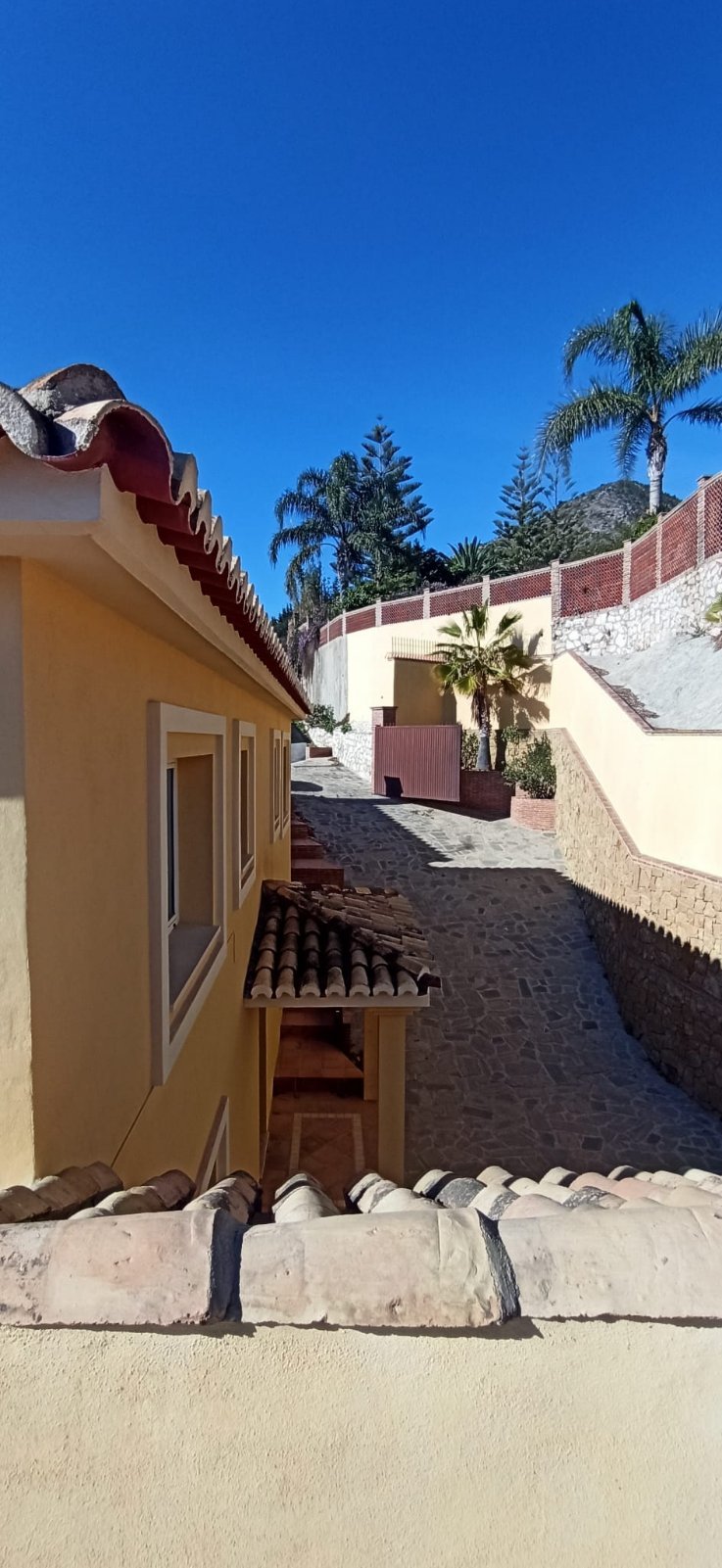 La villa tiene una superficie construida de 397 m² (300 m² útiles) y cuenta con 4 dormitorios, cada uno con su propio baño. El dormitorio principal incluye un amplio vestidor. La cocina está totalmente equipada y el salón con chimenea se abre a una terraza orientada al sur con vistas panorámicas a la bahía de Fuengirola, el lugar perfecto para relajarse o recibir a familiares y amigos.