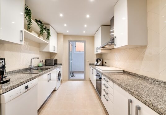 En el interior, el apartamento transmite una sensación de amplitud y sofisticación. Con tres dormitorios de generosas dimensiones y tres baños bien equipados, hay espacio más que suficiente para familias o para quienes disfrutan de recibir invitados. El corazón de la vivienda es el amplio salón-comedor, que cuenta con una terraza orientada al este. Disfrute de desayunos al amanecer y de vistas parciales al mar desde este encantador espacio exterior, que además dispone de elegantes cortinas de cristal, permitiendo su disfrute durante todo el año independientemente del clima.
