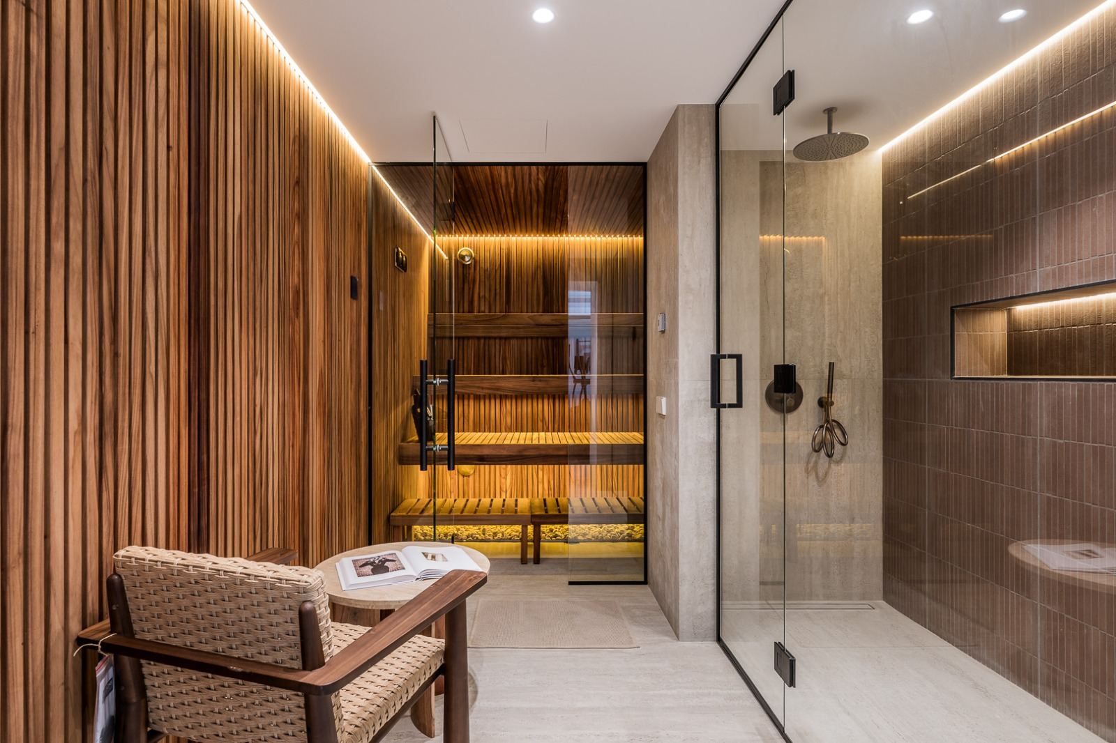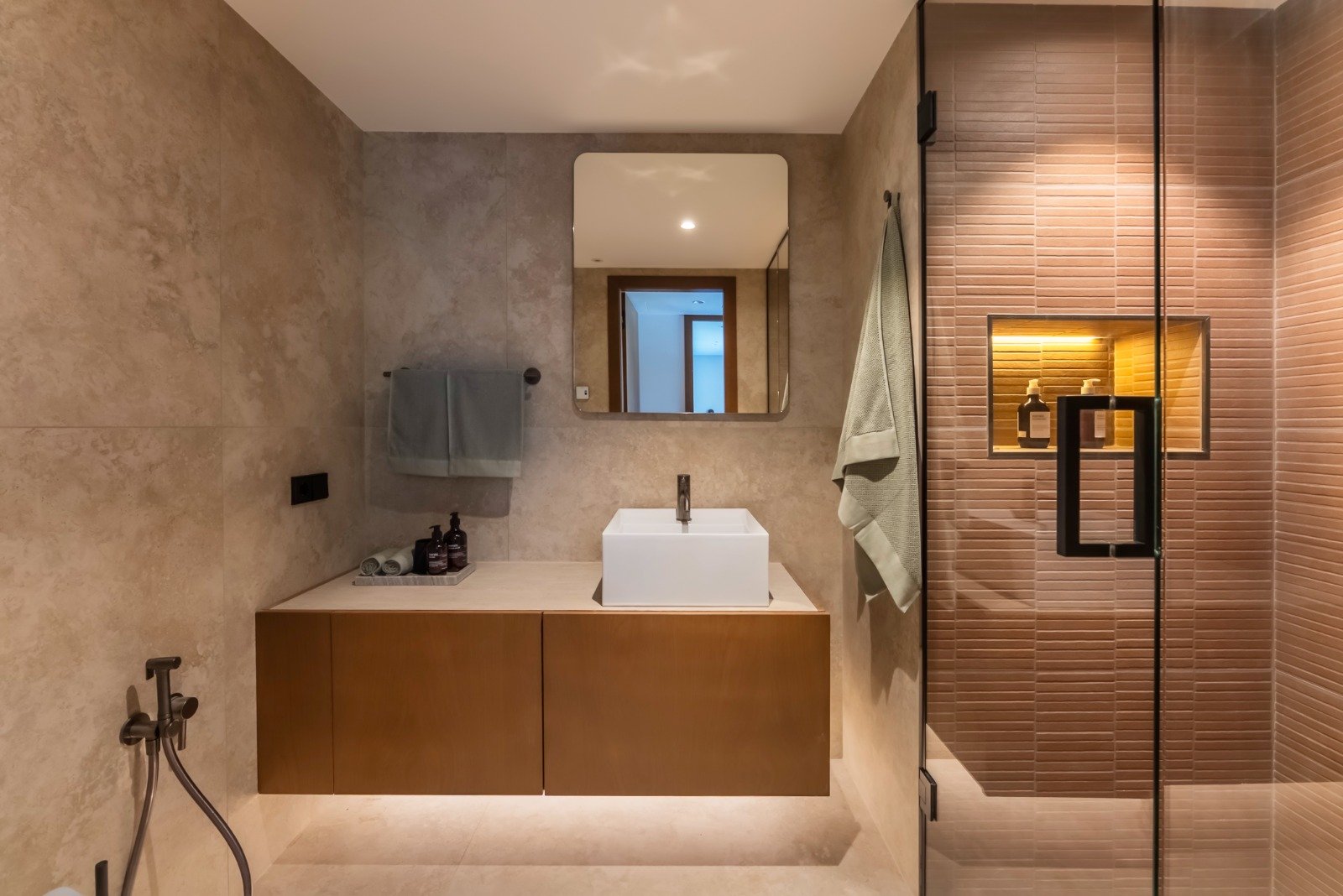 La planta inferior está dedicada al estilo de vida y al disfrute. Un gimnasio totalmente equipado y una sauna moderna acabada en rica madera Apache termo-tratada invitan a relajarse y recargar energías. Para las veladas tranquilas, una elegante zona de bar ofrece el ambiente perfecto para saborear vinos locales selectos. Este nivel tiene acceso directo a la piscina y al jardín, permitiendo una vida interior-exterior perfecta, ideal para entretener o vigilar a tus invitados y niños. También en esta planta se encuentran dos dormitorios adicionales para invitados, diseñados para ofrecer la máxima privacidad y confort, que comparten un baño bellamente equipado, ideal para alojar a familiares o amigos.