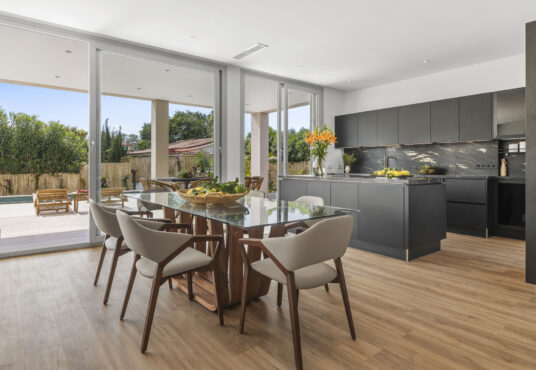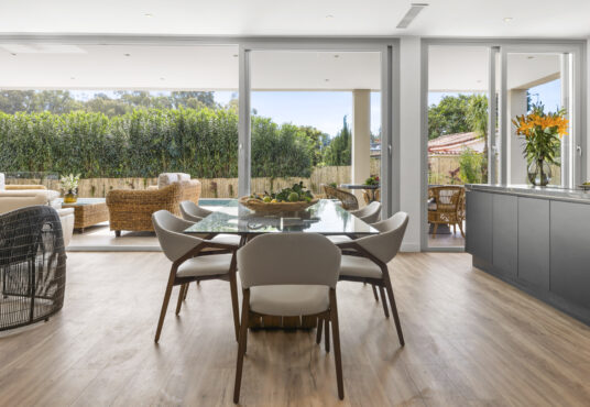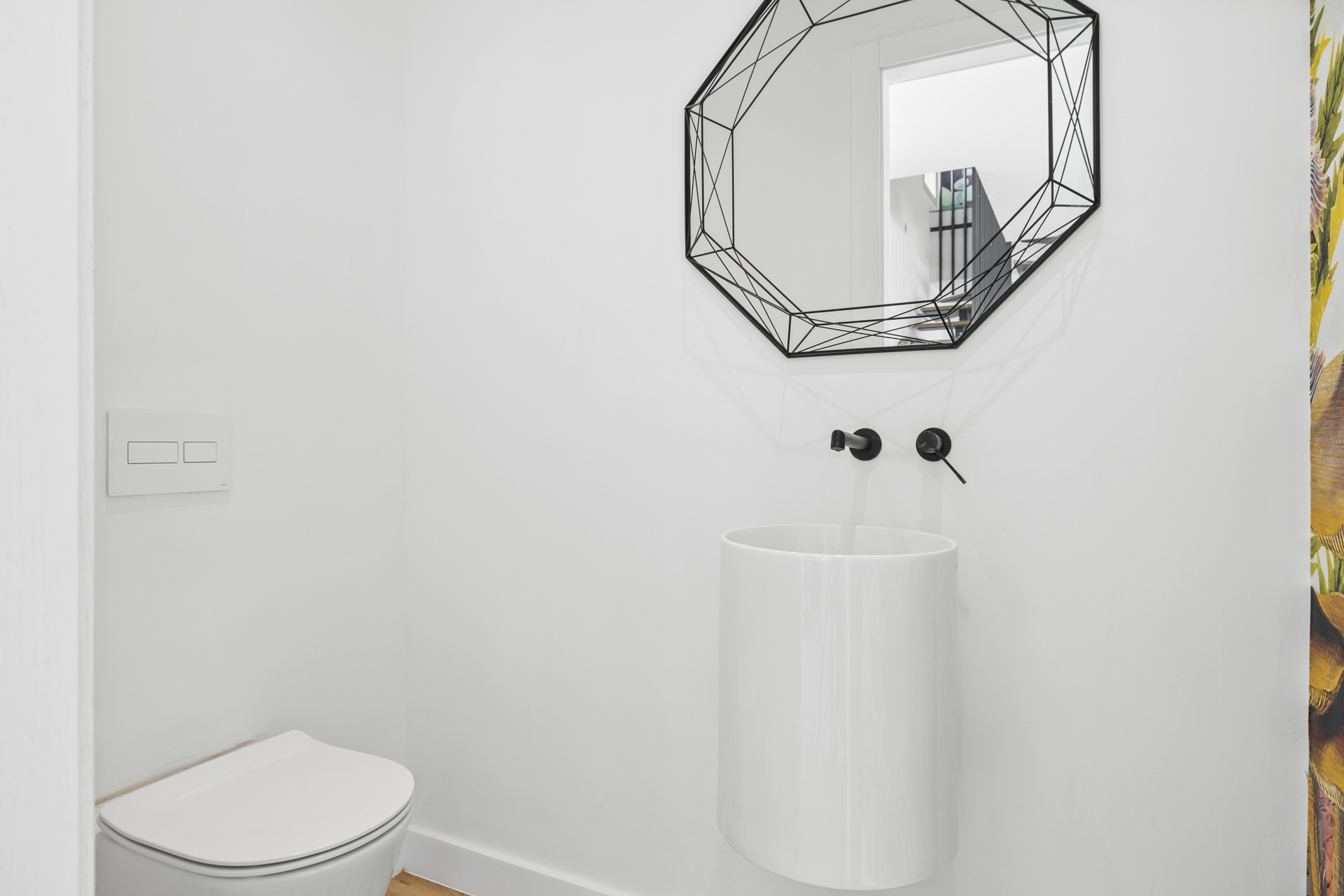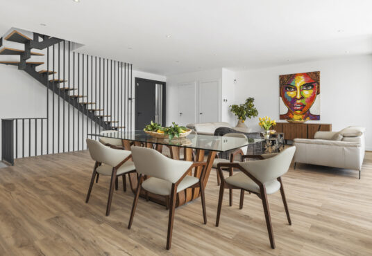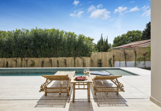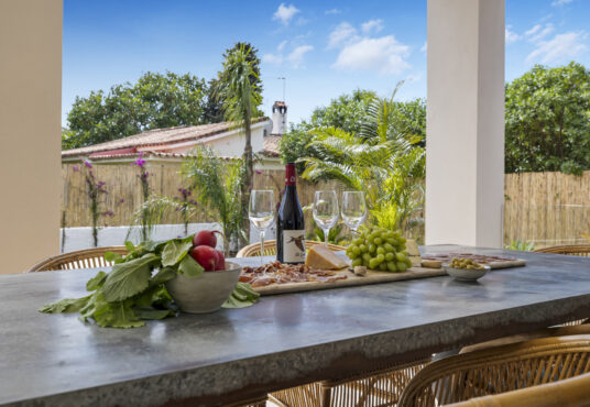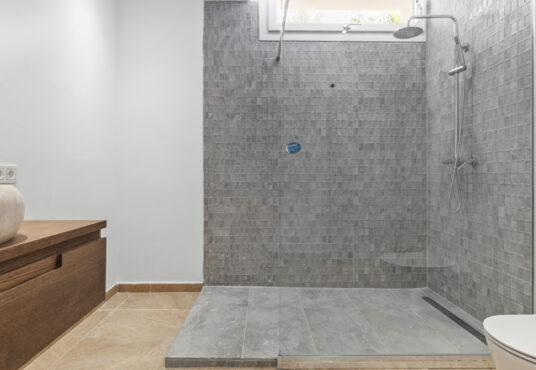 Основной этаж: просторная гостиная и столовая с полностью оборудованной открытой кухней с бытовой техникой Bosch, гостевой туалет и гостевая спальня с ванной комнатой. Прямой выход из всех комнат на крытые и открытые террасы с частным бассейном.