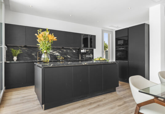 Цокольный этаж: отдельная квартира с полностью оборудованной кухней, спальней с ванной комнатой и зоной для развлечений или тренажерным залом.
