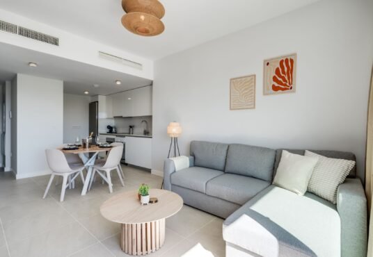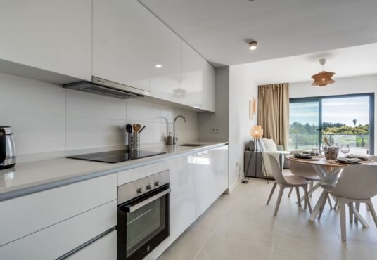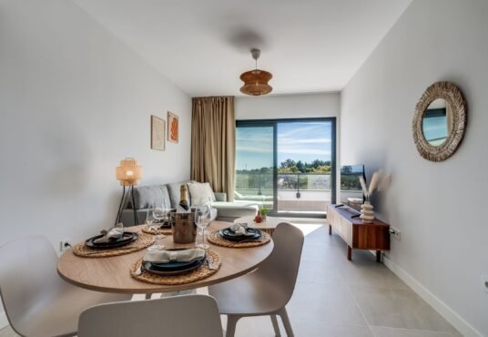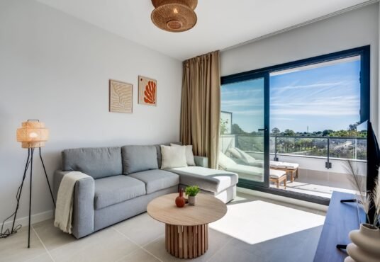 Современная однокомнатная квартира в жилом комплексе Aranya, Сельво (Новая Золотая Миля), Эстепона. Современная однокомнатная квартира расположена в жилом комплексе Aranya, построенном в 2023 году, в Сельво, Лас-Хойяс. Окна выходят на юго-запад, обеспечивая обилие естественного света и удобную современную планировку. Квартира включает в себя гостиную и столовую зону, а также полностью оборудованную кухню открытой планировки с бытовой техникой Bosch, одну спальню с ванной комнатой и прямой выход на просторную террасу. Расположена в прекрасно ухоженном комплексе с большими садами, бассейном, тренажерным залом, зоной отдыха и коворкингом. Идеально расположена на Новой Золотой Миле, между городом Эстепона и Сан-Педро/Пуэрто-Банусом.